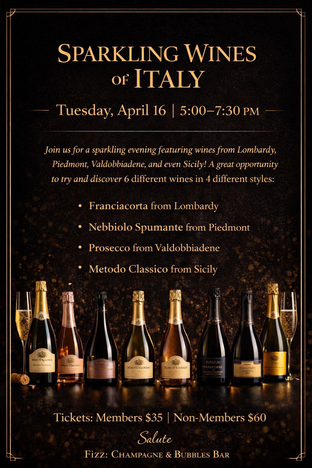 Drop in anytime between 5:00–7:30 PM and discover the bubbles of Northern Italy.